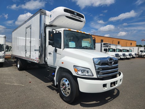 NEW - IN STOCK !! 2025 HINO L7 DE-RATE (25,950 GVW) FULLY LOADED ALL THE STRENGTH OF A 33,000 GVW TRUCK, BUT DE-RATED TO BE UNDER CDL !! (13' OVERALL HEIGHT) THIS TRUCK IS NICELY EQUIPPED WITH AN ALLISON 2500 RDS AUTOMATIC TRANSMISSION, HENDRICKSON AIR RIDE REAR SUSPENSION, POWERED BY A CUMMINS 6.7L / 260 HP DIESEL ENGINE, AM / FM RADIO WITH BLUETOOTH, POWER WINDOWS, POWER DOOR LOCKS, DRIVER'S SIDE FABRIC AIR SEAT, TWO PERSON BENCH SEAT, HEATED / POWER MIRRORS, AIR HORN, 90 GALLON ALUMINUM FUEL TANK, ALUMINUM WHEELS AND EXTENDED FRONT BUMPER. THIS TRUCK HAS BEEN UPFITTED WITH A NEW 26' MORGAN INSULATED / REFRIGERATED ALUMINUM VAN BODY, 3.0" FOAM INSULATION SIDE WALLS & 4.0" FOAM INSULATION ON FLOOR AND FRONT WALL, (2) ROWS OF E-TRACK, INSULATED ROLL UP REAR DOOR, CURBSIDE DOOR, (2) LED INTERIOR DOME LIGHTS, AND 5,500 LB. CAPACITY DHOLLANDIA TUCK-AWAY LIFTGATE AND BACK UP CAMERA !!